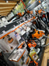 Kleine Dinge, die einen großen Unterschied machen: - Sägeketten, Trimmerfäden, Filter. - Spezialkraftstoffe & Öle von Oest. - Werkzeug, Transportboxen, Schutzhauben